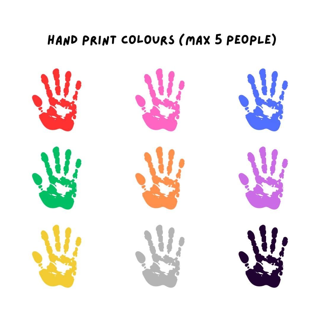 – Please enter the name/s of the people *MAX 5* + colour of each hand you wish to have printed on this mug in the box provided.